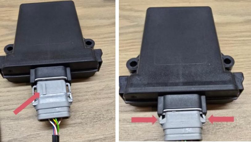 To remove the connector, simultaneously depress the clips on each side of the connector and pull.