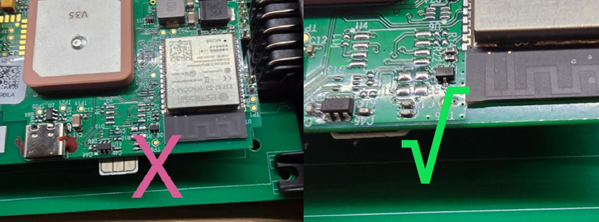 the SIM card and the edge of the PCB to ensure the SIM Card remains in place as