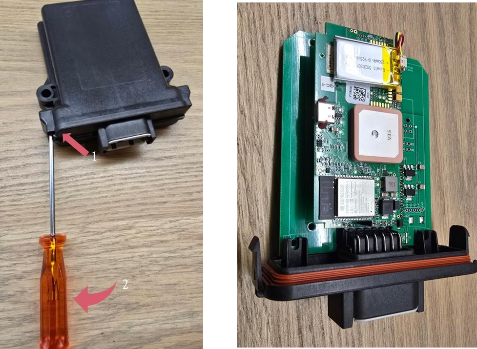 front panel of the device using a small flat screwdriver of approximately 4mm. Insert the screwdriver as shown, and then