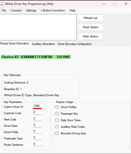 2.Configuring your Mhub 369B/F to acknowledge the information programmed when tagging a driver key in the driver key socket.
